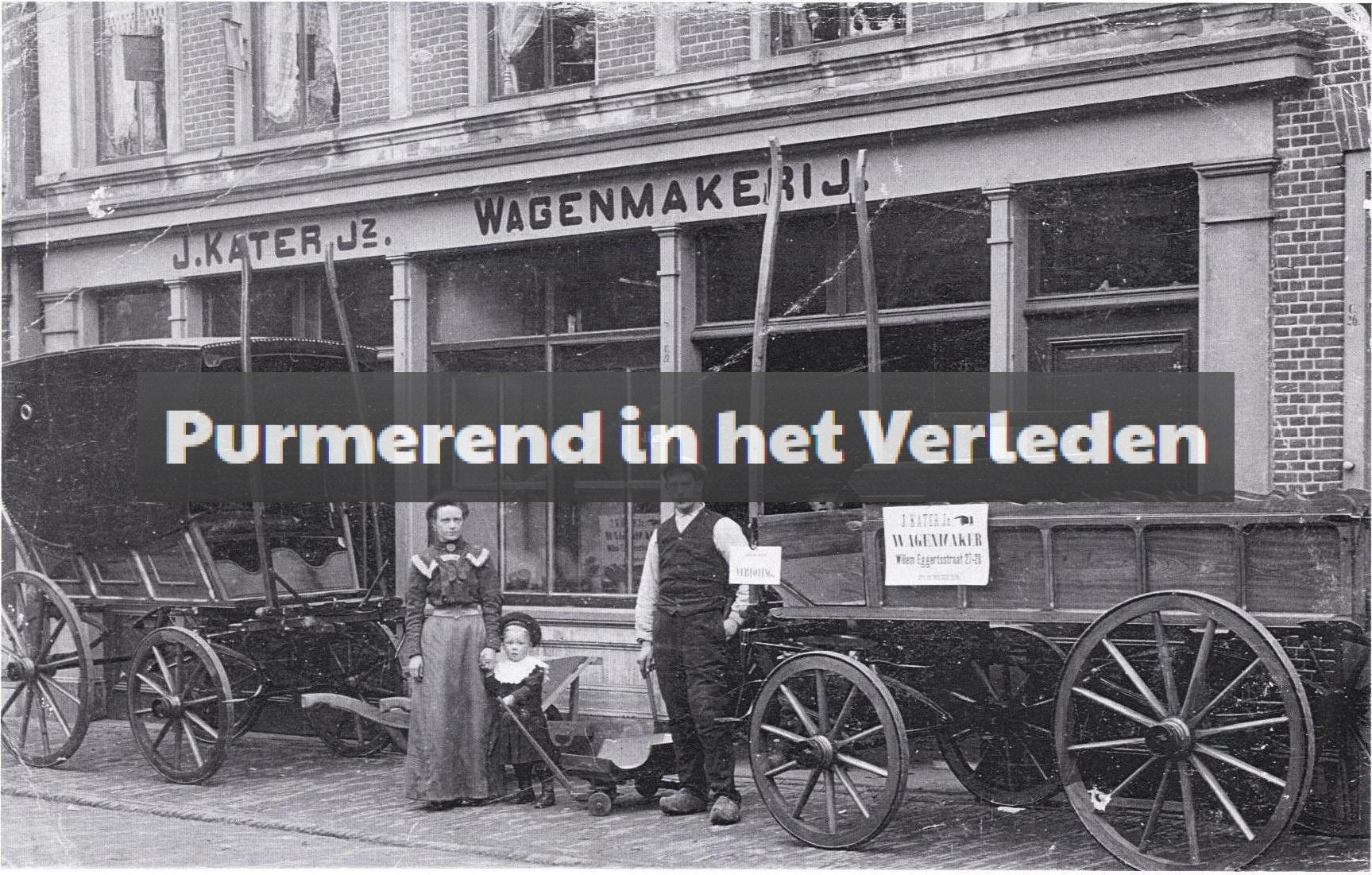 Een van de mooie momenten in de Willem Eggertstraat is het bedrijf van J. Kater Jz, een wagenmakerij. Hij laat hier, samen met zijn vrouw en kind zien, wat hij maakt voor zijn klanten. Zelfs de jongste heeft een wagen om mee te pronken.